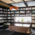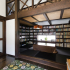市松模様の黒い琉球畳が和モダンな印象を与える和室。この色は奥様がセレクトしたものです。本や映画が大好きなご主人によるコレクションの本やDVDに囲まれたお部屋ですが、雑多な感じはせずこの黒が空間を引き締めています。