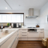 広いキッチンスペースをご要望でしたので、北側にあった壁付けキッチンを取り払い、L型の対面式にすることで、とても使い勝手の良い広々したキッチンになりました。タッチレスで使えるセンサー式の水栓や今話題の還元水素生成器付の浄水器など、設備も充実させています。また、洗濯機をキッチンに設置したり、キッチンにガスファンヒーターの栓を付けるなどS様のライフスタイルに合わせて過ごしやすい空間をつくりました。壁はキッチンパネルではなく、タイルを使用し、メインのタイルに同じ白系統のモザイクタイルをアクセントに配したことで、海外のキッチンのようなお洒落な雰囲気が出ました。