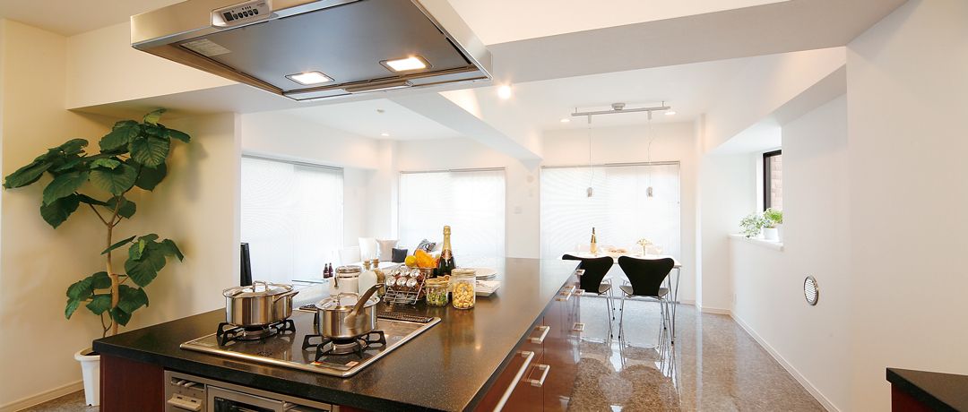 自宅でお菓子教室を開きたいと考えていたT様は、リフォームを前提に中古マンション購入を希望されていました。特にキッチンには「こだわり」をお持ちでしたので、ご要望をしっかり聞いたうえでデザインを進めました。キッチンに関しては取っ手ひとつにも目を向けて提案。最終的にフルオーダーでアイランド型キッチンを製作し、納得のキッチンスタジオができました。