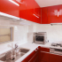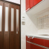 L型キッチンのコーナー部分にあたる箇所に柱があり、そこに納まりよく設置するためには切り欠きが不可欠でしたが、各メーカーにあたるもののこれが難しく、これが実現可能だったのがPanasonicのL-Classというシステムキッチンでした。目の覚めるような鮮やかな扉をはじめ、機能やキャビネットの割付、ダイニング側とキッチン側のサイドパネルの仕上がり具合など、細部にわたりお施主様と一緒に徹底的にこだわり作り上げたキッチンです。