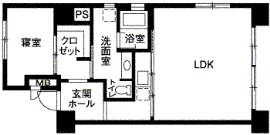 2DKの間取りを大胆に変更し、広々としたLDKを創造、1LDK+ウォークインクローゼットの間取りに。