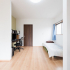 和室だった空間を洋室に変更しています。シンプルな内装ですが、各部屋の壁やクローゼット中にお好みのアクセントクロスを施すことでお部屋をお使いになる方の個性を出しました。1階の奥に位置する平屋部分の主寝室は構造補強のために増やした壁を利用して、造り付けカウンターで書斎コーナーをつくりました。