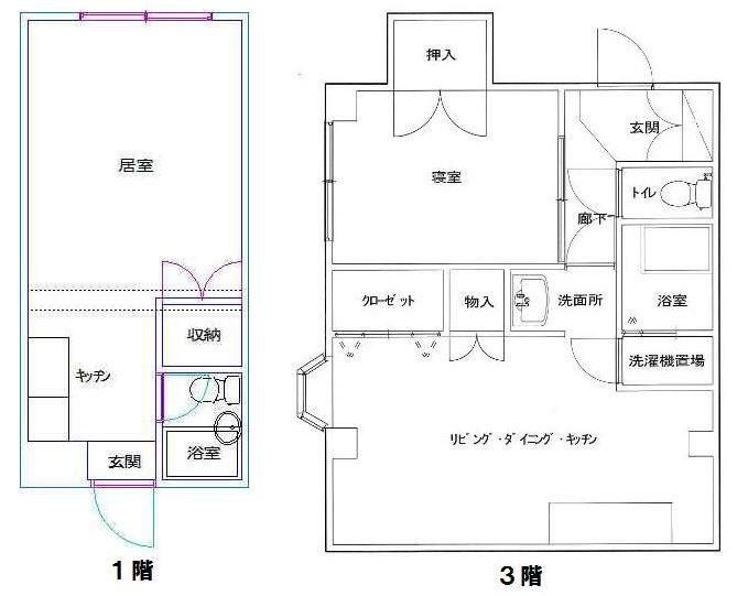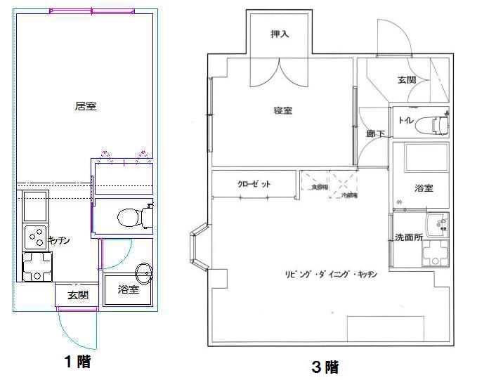 若夫婦がお住まいになる3階は、洗面化粧台の位置を移動し、脱衣場を確保。LDKを広げ、家族だんらんのスペースを居心地のよい空間にしました。 1階賃貸部分の浴室は、浴槽・洗面・トイレが1部屋の3点ユニットからトイレを別に分けました。