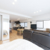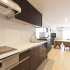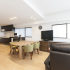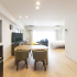 3DKの間取りをスケルトンリフォームしてつくったワンルーム。玄関に入ってからリビングダイニングスペースやベッドスペースまで壁や扉を設けていないので、玄関を抜けてキッチンに入った瞬間に、大空間が広がります。元のダイニングはバルコニーに面しておらずキッチン横の窓のみでしたが、和室と洋室2部屋分をリビング部分に取り込んだため、2面からたっぷりの光が入るとても明るい空間となりました。