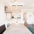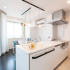 キッチンからカップボード、床のフロアタイルに至るまでホワイト系で統一された開放感のあるキッチン。これまではキッチンの上部に吊戸棚があり、少し窮屈さを感じる空間でしたが、吊戸棚を設けずに上部をオープンスタイルにすることで、視線が抜ける気持ちのよいキッチンになりました。