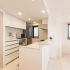 リフォーム前のキッチンはダイニングとの間の開口部が狭く、一体の空間ではあるものの半独立のような閉鎖的なキッチンでした。奥様は開放感のあるキッチンをご希望でしたので、コンロ側以外の壁をなくしオープンな空間に。吊戸棚は設けず開口を大きく開けたことでリビングダイニングとの一体感を高めました。真っ白なキッチンが広々とした印象を引き立てます。