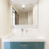 リビング横にあった和室を撤去し、リビングダイニングを広げ15畳超えの広々リビングの2LDKの間取りへ変更。内装は各部屋にホワイトアイボリーを基調としたグレイッシュなフローリングを貼り、設備もブラウンやグレーをセレクトするなど大人の品格がうかがえる、モダンかつシックな仕上がりのお住まいとなりました。