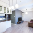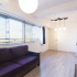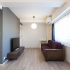 以前は白いクロスがメインのごく普通な内装のリビングでした。今回は白を基調とした石調のクロス、四角い幾何学模様のクロス、シックなブルーグレーのクロス、3種類のクロスを貼り分けています。落ち着いた色合いを選び、貼る分量にも配慮したことで、違う色柄のクロスを複数組み合わせても喧嘩せずにまとまった印象に仕上がりました。床はA様が当初よりご希望されていたグレイッシュなフローリングを既存の床に張り増ししました。窓まわりの濃いブルーのカーテンもトータルコーディネートで選び、統一感のある落ち着いた雰囲気のリビングとなりました。