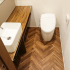 共働きである施主様は家族がくつろげる広いリビング中心の生活を希望されました。真ん中に階段があるため空間が分断されていましたが、構造補強により階段の壁をオープンにすることが出来ました。トイレ位置のプライバシー確保と開放感あふれる生活空間となり、奥に移動したキッチンまで見通すことが出来ます。