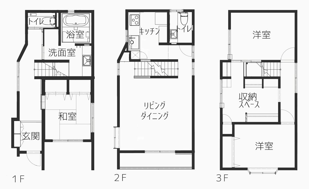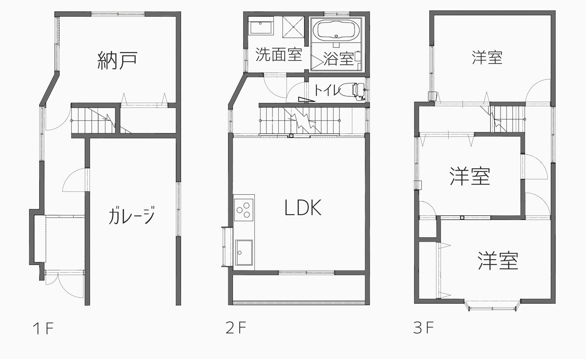2階にあった水回りを1階に移動、そのスペースをキッチンにしたことでリビングはゆとりあるスペースとなりました。また、ガレージだったスペースを和室に変更しています。