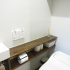 2階のトイレを新しくするとともに、トイレを1階にも新設しました。ゆったりスペースのトイレには、カウンターを設け、大きいサイズの手洗いボールを設置しパウダールームとしてもできるように。壁には横長ミラーを設置して、閉塞感を与えないように工夫しています。また、上部にはたっぷりの収納スペースを確保しました。