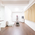 シンプルだが温かみと落ち着きを感じさせるリビング。床は既存のフローリングの上にナチュラルウォールナットのフローリングを上張りしています。床と天井はクロスの貼り換えを行いました。色はベーシックなホワイトですが、四角形の柄が配置された奥行きのあるデザインでお部屋に立体感を与えてくれています。