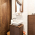内装は、大理石調の床やデザイン性の高い柄物のクロスをセレクトし、高級感のある仕上がりに。まるでおしゃれなお店にあるトイレのような、贅沢な空間が完成しました。