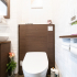 今回リフォームをするにあたり、車椅子のお母さまが遊びに来たときに使いやすいように、またご自身が将来車椅子生活などになっても困らないように、壁を取り払い広々としたトイレ空間を実現しました。また、扉も開き戸から引き戸に変更することで、動作が少なくて済み出入りをしやすくしています。