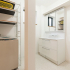 浴室は既存の大きなユニットバスをサイズダウン、理由は大きすぎて冬寒いから。また、寒さ対策の施されたお風呂を追求し、システムキッチンは最新の設備で使いやすさを追求されました。洗面脱衣室はお風呂を小さくすることで広くなり、入口の位置を変えることで洗濯機や化粧台の使いやすさを改善することができました。