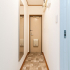 また、T様邸は裏口にも玄関があります。こちらの玄関もクッションフロアを張りイメージを一新しました。色は検討を重ねた末に、廊下のフローリングとも調和し、汚れも目立ちにくいブラウンをお選びになりました。