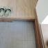 玄関裏に収納スペースを新設する都合上、玄関は以前よりも面積を狭めることに。その分大型シューズクローゼットを設置しました。また、上がり框にサンダルが2足ほどしまえるスペースをつくったことで、玄関土間部分が狭くなってもスッキリと片付くように工夫しています。