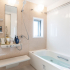 そこで思い切ってバスルームをリフォームすることに。仕事の疲れを癒すためにもお風呂は少し贅沢にしたいというご要望により、TOTOのシンラを設置しました。全体的にベージュやアイボリーなど柔らかい色合いを使い、視覚的にもほっとできる空間に。