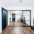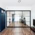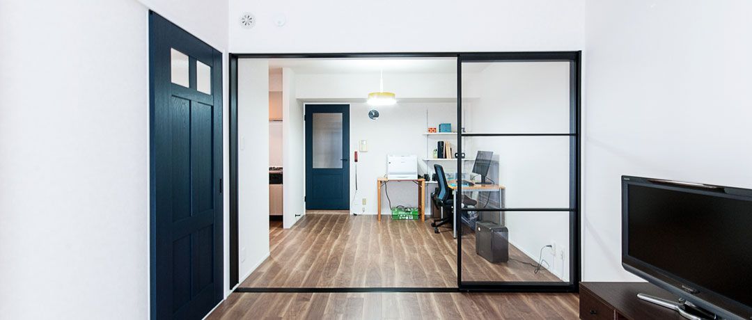 また、在宅でお仕事をするK様にとって、仕事をする空間やプライベートを過ごす空間、身体を休める空間を明確に分けることも重視したいポイントでした。そこで透明な3枚引き戸を採用することでON/OFFの空間を仕切りながらも空間の広がりは損ねないお部屋を実現しました。