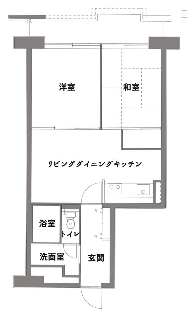 元は和室を含んだ2LDKの間取り。和室を洋室に変更するとともに収納部分を拡張、入口の移動を行いました。