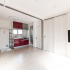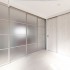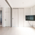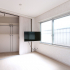 白を基調とした明るい洋室。以前はダイニングと洋室の間に壁や小さな引き戸があったためにとても圧迫感を感じるお部屋でしたが、壁を全て解体し天井までの高さの引き戸4枚を空間の間仕切りに用いることで空間を開放しました。扉は全てクローゼット内の戸袋に引き込めるため、全開にすれば完全なワンルームとして使用することができます。レールを上部に設けた上吊り引き戸のため床もフラットです。扉はすりガラス状のため、閉め切れば外からの視線を遮ってくれます。