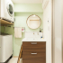 和室1部屋を含む3DKのお部屋をゆったりとした1LDKに間取り変更しました。キッチンを移動させアイランドキッチンにし、バス・トイレ・洗面の水回りは1か所にまとめました。