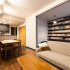 空間でひときわ目を引くのが、洋室の壁一面に設けたオープンタイプのブックシェルフです。