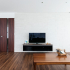 内装にもこだわり、お住まいにふさわしいグレードにしつらえています。床に採用したのは大理石のパウダーを練り込んだフローリング材。色味は落ち着いたダークブラウンを選び高級感を演出しました。また、壁の一面には立体感のあるエコカラットタイルを貼り、フロートタイプのテレビ台を設置。空間に深みや表情が生まれました。