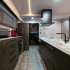 前の持ち主が行ったリフォーム工事によって、鉄柱が付けられていた上、梁の欠損が見つけられ、想定外の事で当初のプランニングからキッチンのレイアウトを変更した結果、LDKの使い方としては良い方向になりました。内装材にはイタリアンタイルを多く取り入れた高級感のある仕上がりに構築。住宅設備機器も上位ランクの製品を採用し、高級ホテルのようなお部屋となりました。