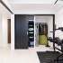 リビング横の和室を洋室に変更しました。リビングとの間口を広げ、3枚引き戸を設置することでリビングと一体で使えるようになっています。押入もクローゼットに仕様を変更。中は奥行きが浅い面と深い面でしまうものが分けられるように仕切りを付けました。空間の統一感を重視し、収納扉はキッチンと同じブラックで揃えました。