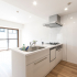 設備は「ナスラック」ベルフラワーを設置。食洗器・無水両面焼きグリル付ガスコンロなどの機能がついたキッチンです。キッチンの色は空間に馴染ませることを意識してホワイト色の"ノーブルスノー"にしました。