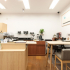 既存のまま利用できた収納家具の扉は新しいショーケースと同じ木目柄のダイノックシートを貼り、色を統一しました。使えそうな所に合わせて新しいショーケースを組み合わせて費用削減を行っています。また、壁面家具の撤去・移設に伴って経年劣化していたクロスとソフト巾木の貼替、スイッチコンセントのプレート交換も行いました。
