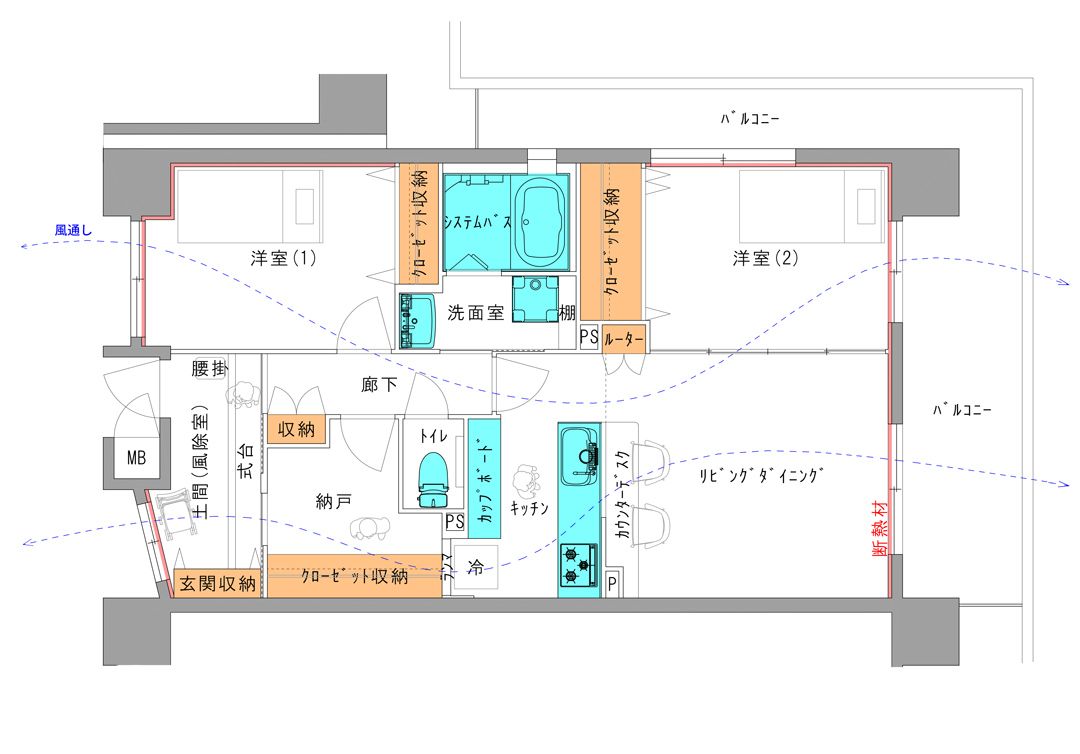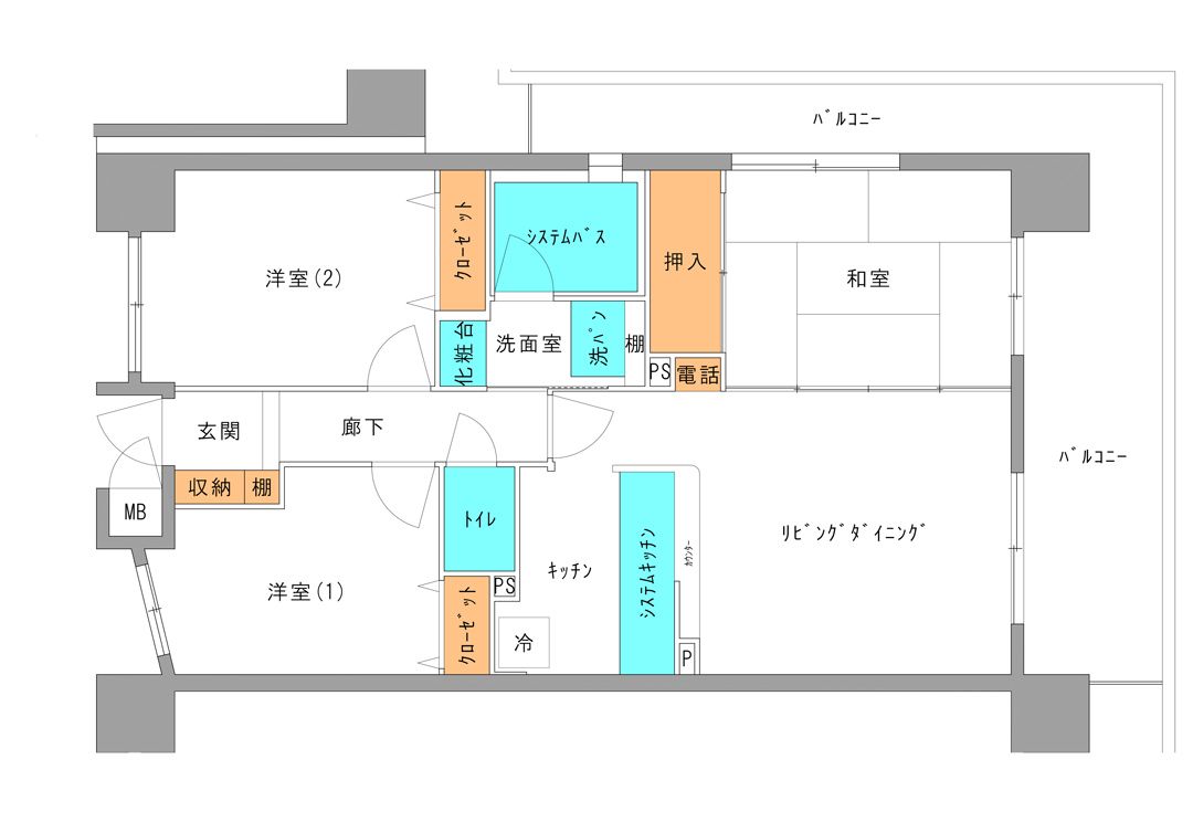 3LDKの間取りを変更し、2SLDKへ。