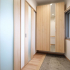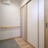 横に大きく拡張し、ゆったりとした玄関土間と式台のような通路を持つ玄関に。将来は車椅子や歩行用カートなども置くことも想定しスペースを設けました。玄関収納は廊下部分に普段使い用、玄関の端に多目的用の2つを用意し使い分けられるようにしました。