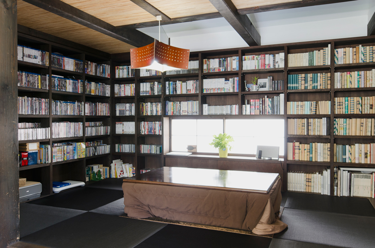 「これは妻のこだわりです。でも僕や子どもは畳が黒なんて大丈夫なのかと心配していたんです。でも黒にして正解でしたね。空間にうまく調和しています。」とご主人は本に囲まれたお気に入りの和室を眺めながら言います。