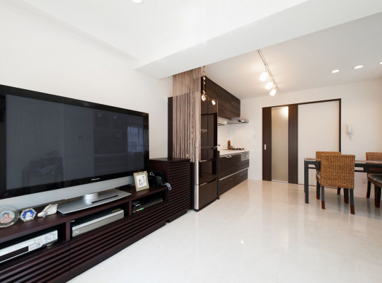 I様は、アジアンの雰囲気がお好みということで、雑誌やカタログ、お手持ちの家具等の写真を持ち寄りながらお打合せを重ねました。 リビングは、お好みのダークブラウンに統一させながらも、暗くならないよう面積の広い天井、壁、床をホワイト系にし、開放感を出しました。 主寝室は落ち着いた雰囲気に、子供室は柔らかい雰囲気にと各お部屋に合わせて仕様を変えつつも、それらをつなぐ廊下をシンプルにすることで、違和感なくまとめることができました。 ヒヤシンス素材のベッドやシェルランプ、レースのカーテン等、I様のご用意されたインテリアがとてもお部屋に合っていて、お引越し後に伺った際に、お引き渡し時よりも更に素敵な空間になっていて、とても嬉しくなりました。ありがとうございました。