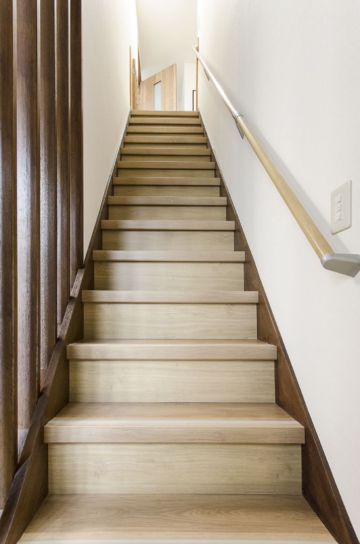 リフォーム前のO様のお宅は、聚楽壁の和室や廊下、玄関横の応接間など昭和の味わいを残す内装でした。しかし経年劣化により襖は変色し、聚楽壁はポロポロ剥がれて掃除が大変だったといいます。また、カーペット敷きの床や天井から吊り下がる照明が原因で階段や廊下はどこか圧迫感があり狭い印象でした。そこで2階を中心に内装を一新、ダイニングや廊下はホワイト系のクロスやナチュラルで明るい色合いのフローリングを使用することでトーンアップを図りました。