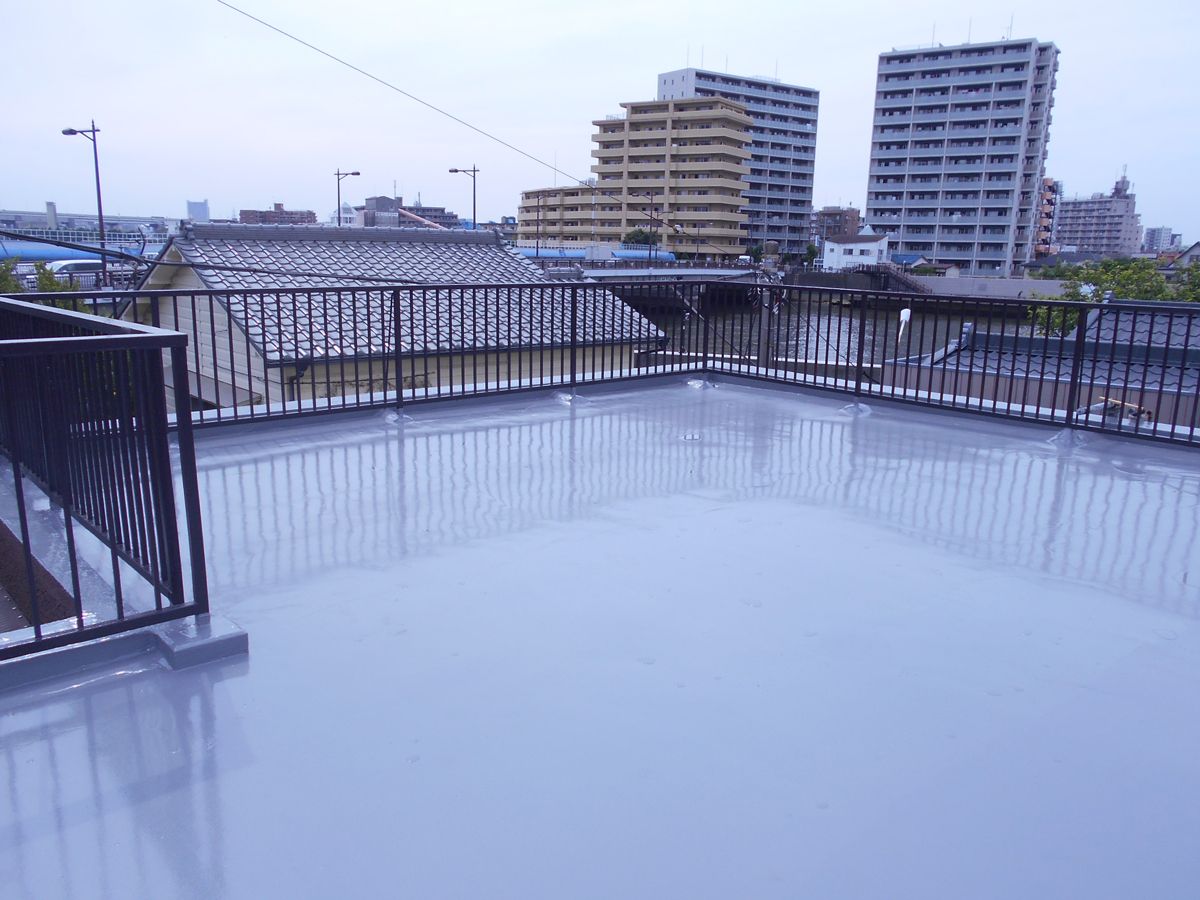 O様宅では窓のサッシ部分から水が垂れてきたり、壁に水が染みて色が変わってくるなど、雨漏りの被害もありました。担当者がチェックをすると、屋上に施されていたはずのトップコートや防水は取れ下地が見える状態で、防水効果はほとんどなくなっていたといいます。