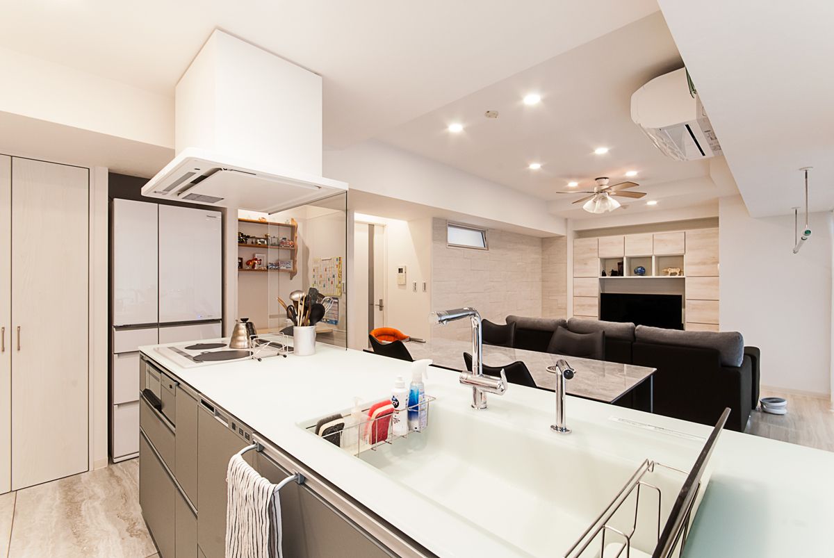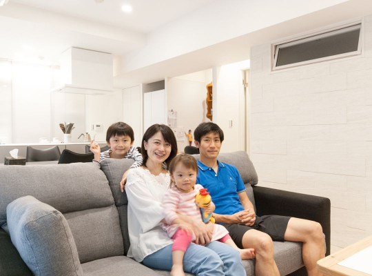 下のお子さまが生まれ、日々増えていく洋服やおもちゃを前にお住まいの手狭さを感じて住み替えをされたK様。お子さまの学区内で物件探しをした末に購入したのは事務所として使われていたマンションの一室でした。