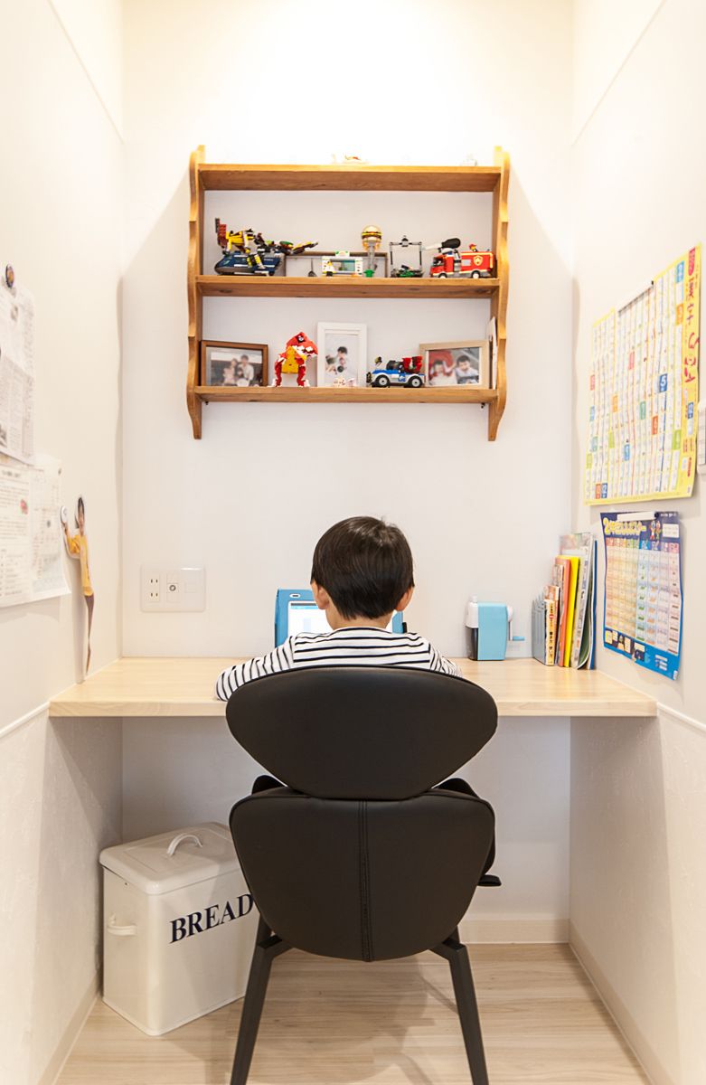 当の息子さまもこのスタディスペースを「ぼくの場所」と言いとても気に入っているご様子。今では学校から帰ったらこのデスクで勉強をする習慣が身についているのだそう。