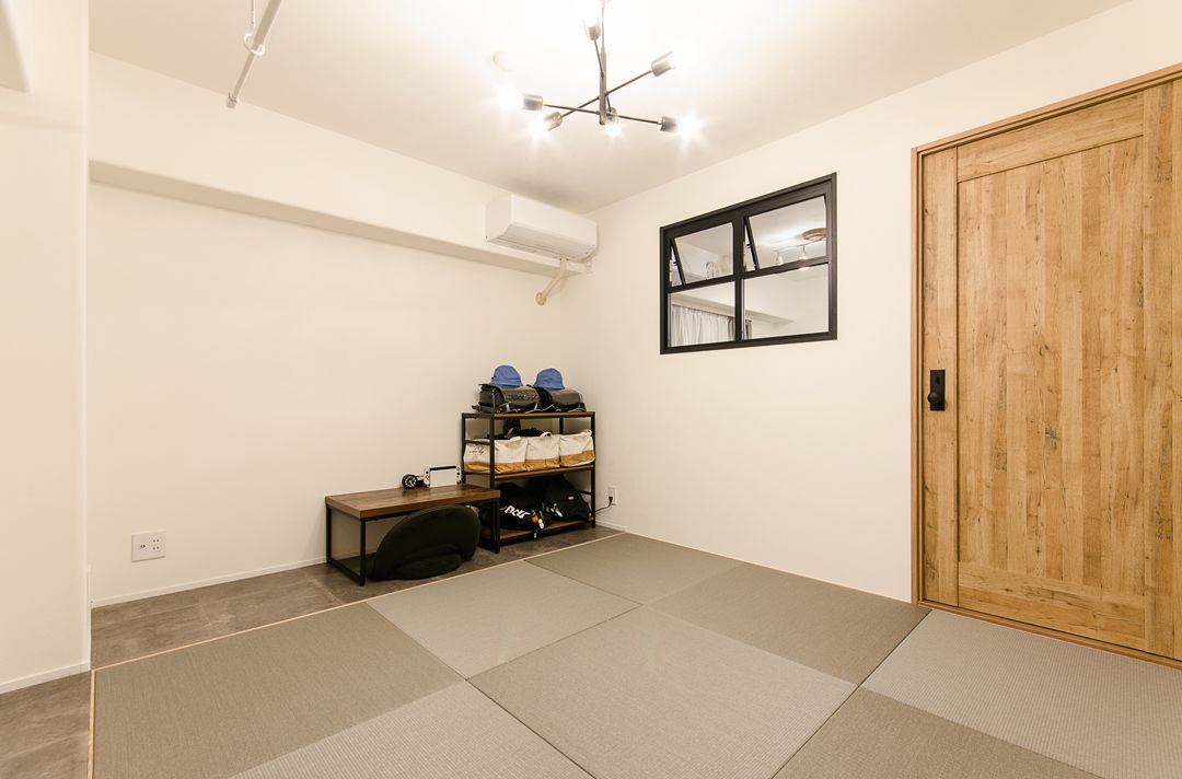 「これまで半畳の畳はあまり見たことなかったんですが、この畳なら隣のリビングの“洋”とも合うので和室を残すことにしました。畳の色は落ち着いた雰囲気にしたくてグレーを選びました」