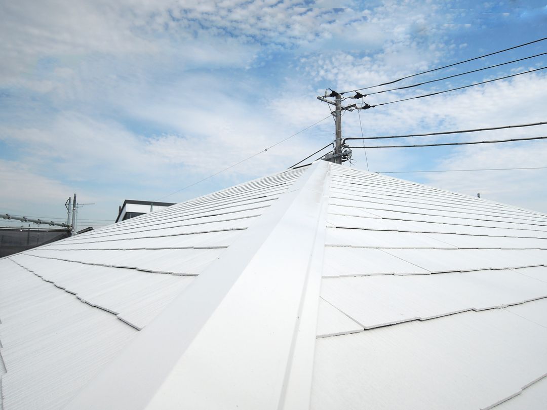 お客様ご要望の屋根の色ですが、20年以上この仕事をして、たくさんのお宅を塗り替えて来ましたが、屋根を白くした経験がないため仕上がりを想像できず、「本当に良いですか?」(×10回)と尋ねましたが、私の心配は全くの杞憂でビューティフルに仕上がりました。私にとって最高の作品が出来上がり、K様ご夫妻には心より感謝申し上げます。
