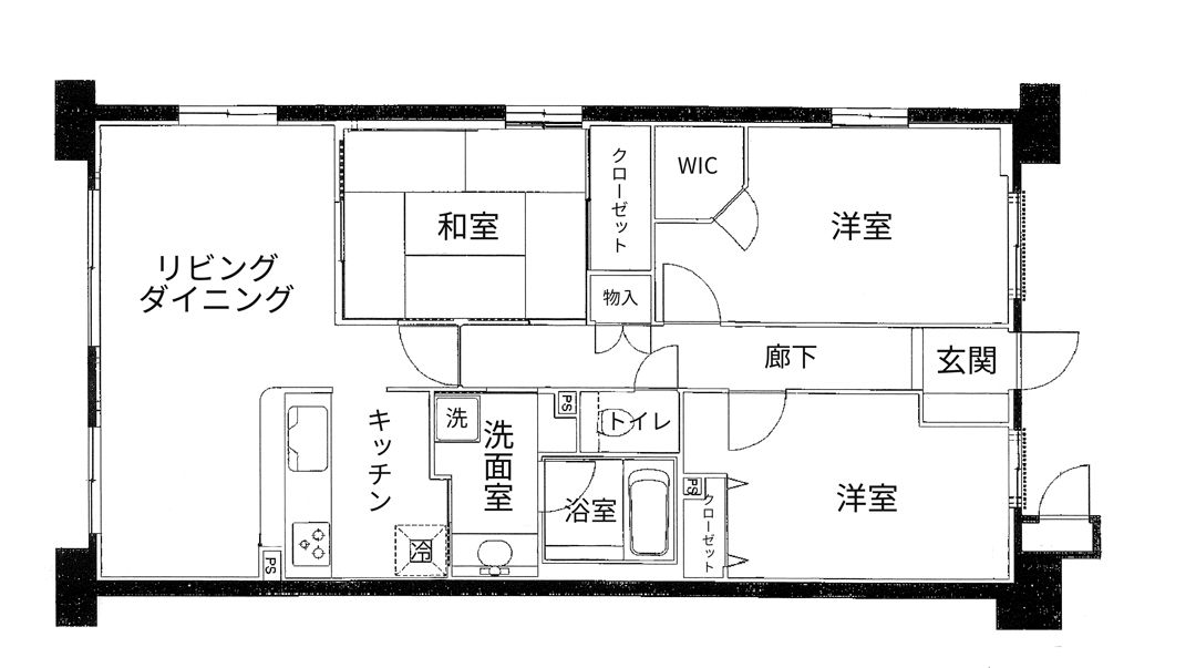3LDKで1部屋が和室のお家。キッチンは大きな窓に向いて付いているものの、光が差さない空間でした。