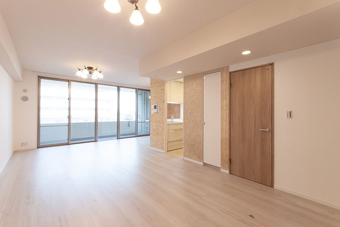 元々天井高がありLDKも20帖と広々したお部屋でしたが、収納扉をハイドアにしたり内装を明るく柔らかな色で統一したことで、さらに広がりとくつろぎを感じるお住まいが完成。現在はインテリアの配置を絶賛検討中とのことですが、大きな家具は置かずにシンプルに暮らす予定だそう。