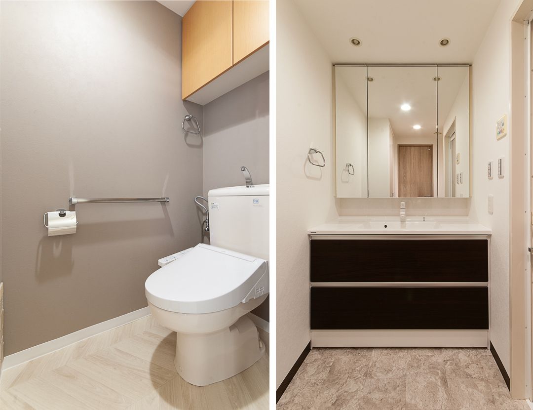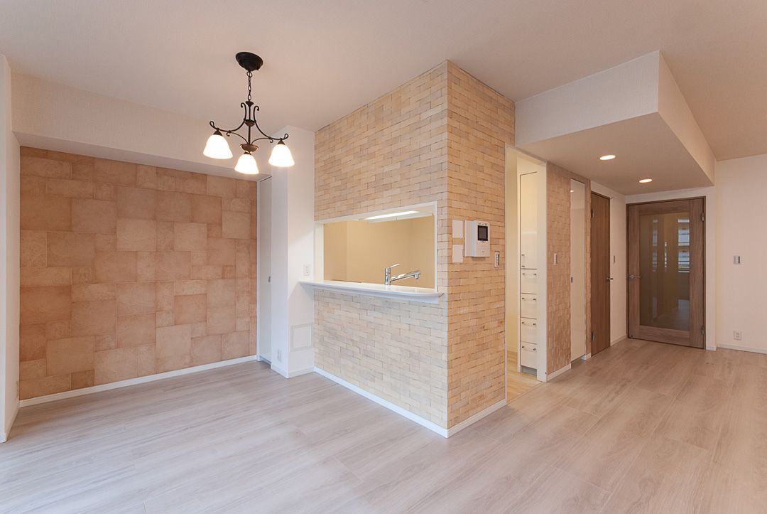 「壁のエコカラットは素材的に残したくて、デザインも違和感なく馴染みそうだったので残すことにしました」とM様。天井のクロスや照明も手を加えずに元々あったものを利用しました。