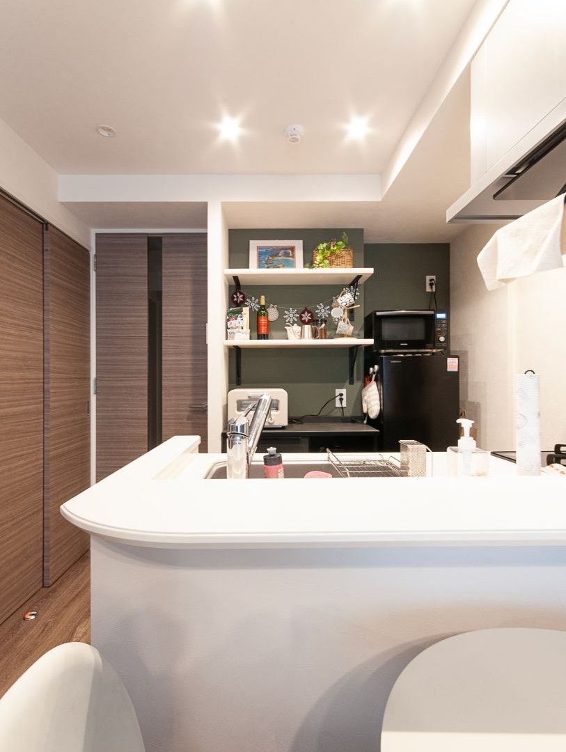 いくつか物件を内見する中で、現在の部屋に足を踏み入れた瞬間、О様の心を動かしたのは眺望でした。「南側に窓があって 2面採光になっていて、視界が抜けているんです」と、カーテンを開けて見せてくださいました。そこには駅近の立地ではなかなか出会えない、ビルに遮られない開放的な景色が広がっていました。以前のセカンドハウスとほぼ同じ35㎡の広さだったことも決め手になったといいます。