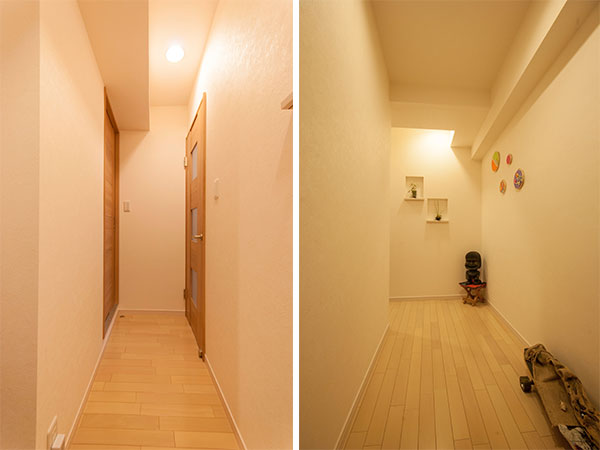 「多少部屋の面積を狭めることにはなりましたが、廊下を作って正解でした。また、2LDKだった間取りを1LDK+WICに変更しました。WICに家中のものを収納できてしまうのでとても重宝しています。おかげで部屋もすっきりしましたね。」